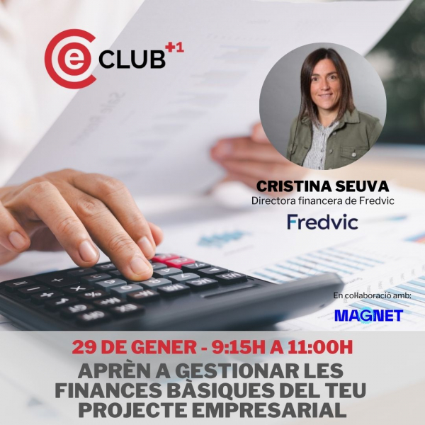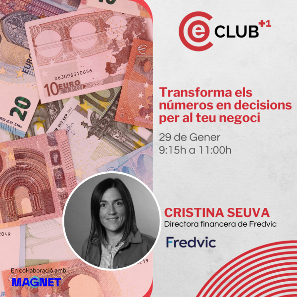 Al Club +1 hem preparat una sessió pràctica sobre finances bàsiques per a autònoms i microempreses amb Cristina Seuva, directora financera de Fredvic. Aquesta trobada està pensada per ajudar-te a traduir els números a un llenguatge entenedor, posar ordre a ingressos i despeses i donar eines útils per gestionar millor el teu dia a dia. Data i hora: Dijous 29 de gener | 9:15h – 11h Aquesta activitat és exclusiva per a socis del Consell Empresarial d’Osona.