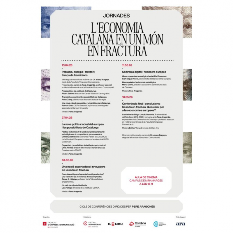 La Facultat d’Empresa i Comunicació de la UVic-UCC impulsa el cicle de jornades “L’economia catalana en un món en fractura”, un espai de reflexió que analitza els principals reptes econòmics globals i les seves implicacions per a Catalunya.