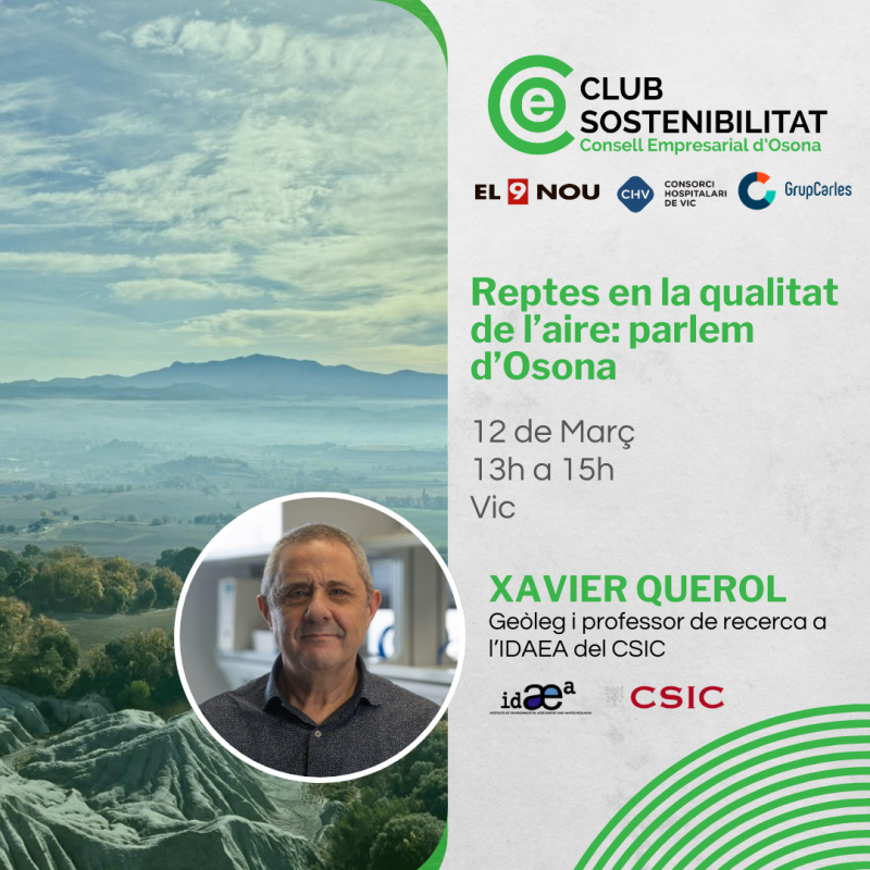 La sessió comptarà amb la ponència de Xavier Querol, geòleg i professor d’investigació a l’Institut de Diagnòstic Ambiental i Estudis de l’Aigua (IDAEA-CSIC, Barcelona), considerat un dels principals experts en contaminació atmosfèrica a escala estatal i internacional. Assessor de l’OMS i de la Unió Europea i Premi Rei Jaume I en protecció del medi ambient, aportarà una visió científica sòlida i aplicada a la realitat de la comarca.